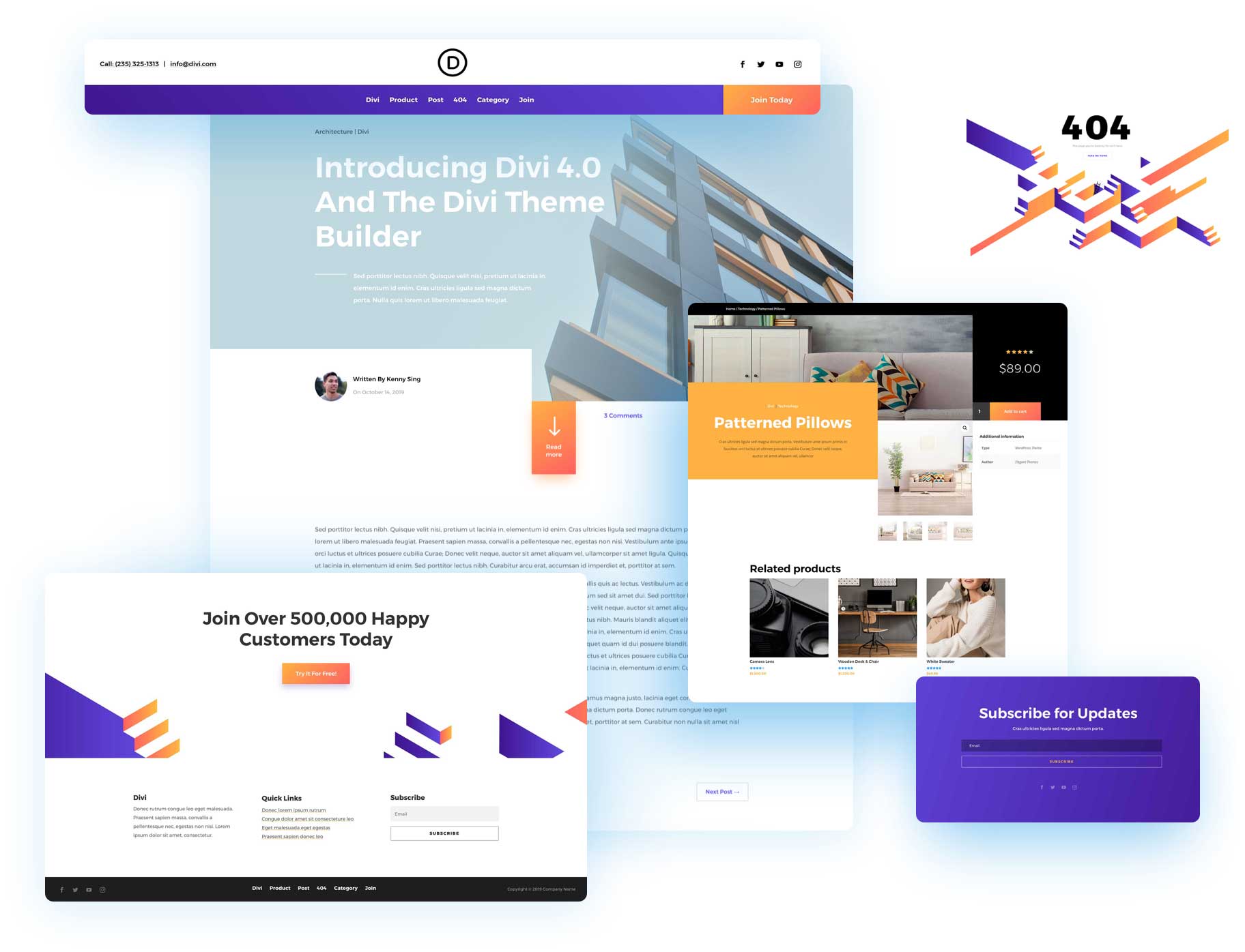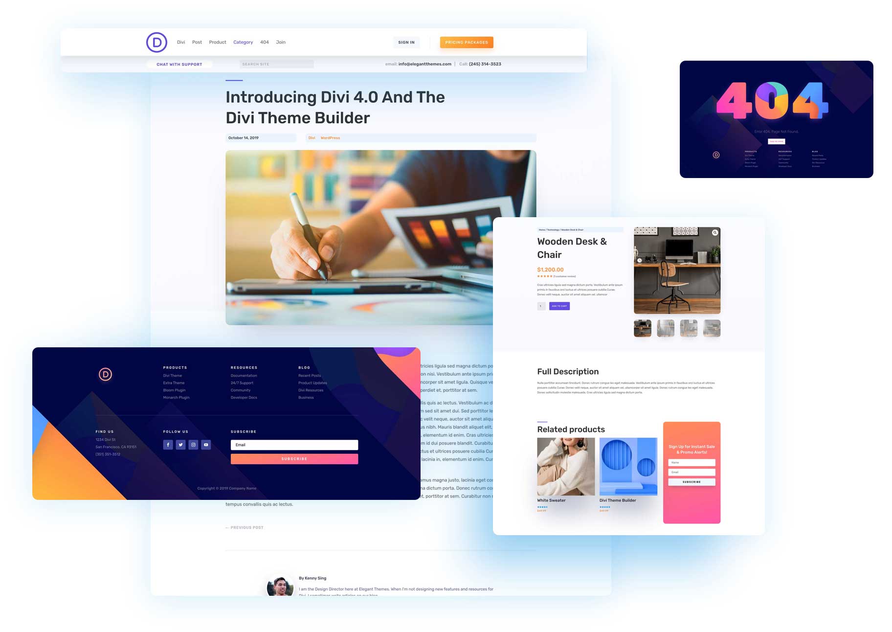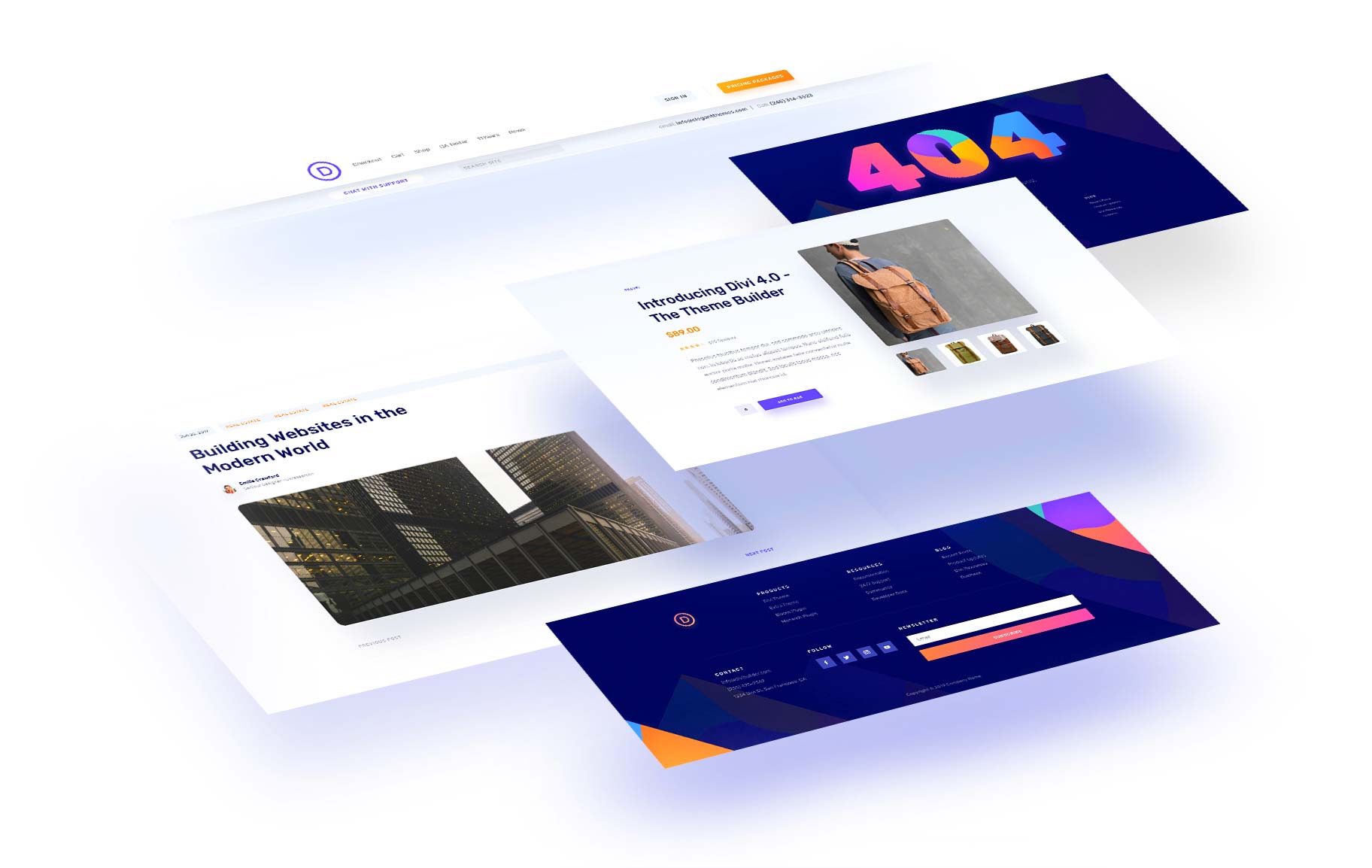 In this Divi 4.0 demo, we re-built the Elegant Themes website using Divi and the new Theme Builder. This theme builder pack includes a custom Header & Footer, Product Template, Blog Post Template, Category Template and 404 Page Template. Stay tuned to the blog over the next week because we will be giving away one of these free theme builder packs every day for the next six days!
