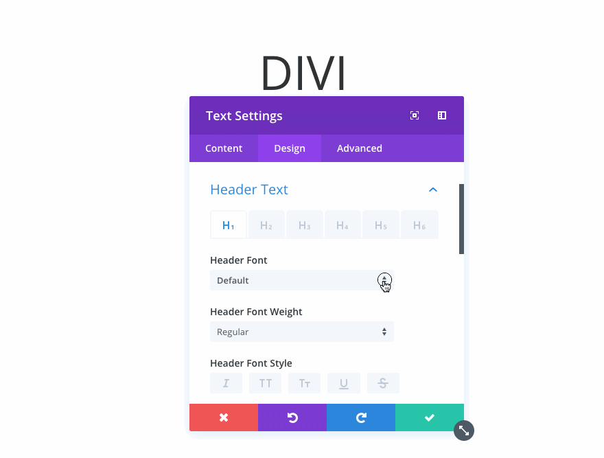 You can now create custom design styles for each heading level in the Divi Builder, assigning custom fonts, text sizes and font styles to H1, H2, H3, H4, H5 and H6 independently. This makes custom headings so much more useful and practical when used inside of the Divi text module.
