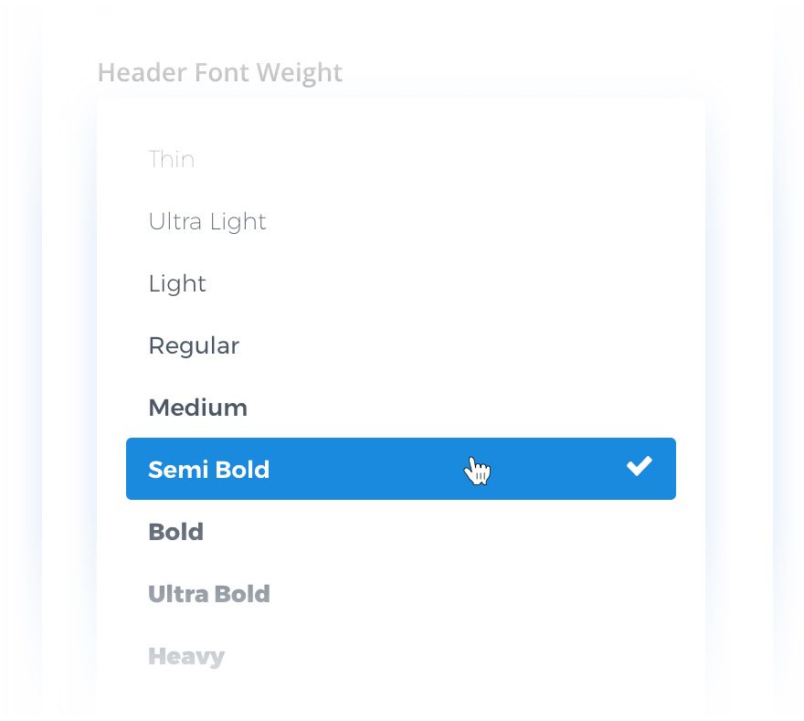 – Added new dynamic font weight options for all 800 Divi fonts, ranging from Ultra Thin to Ultra Bold.